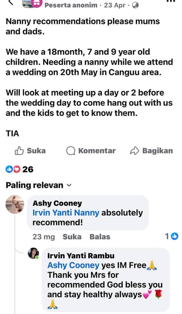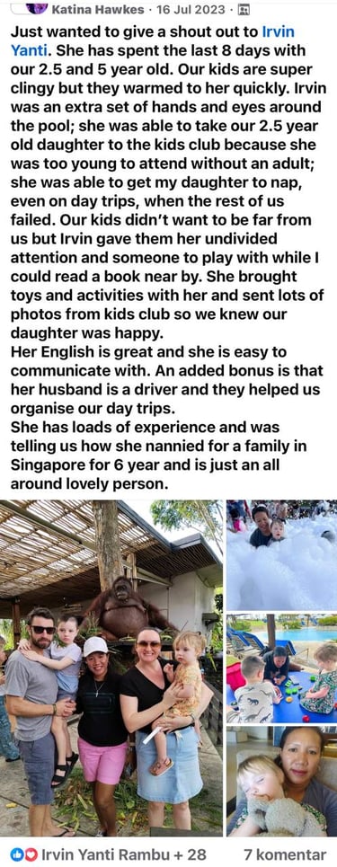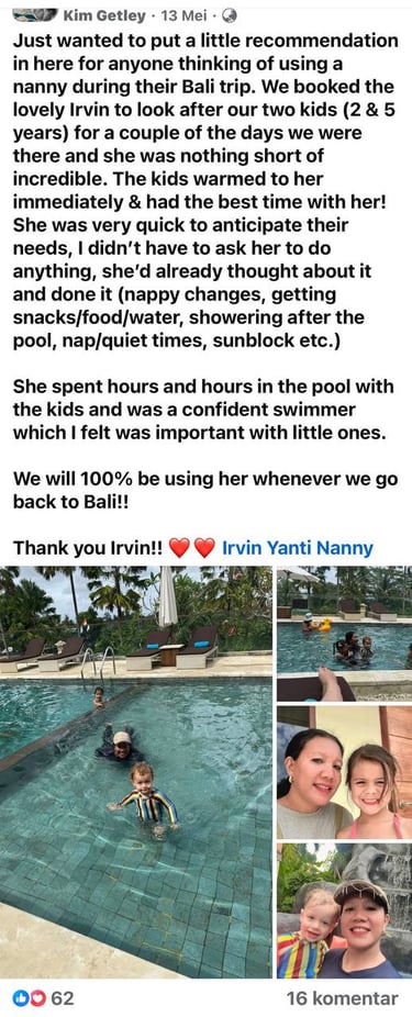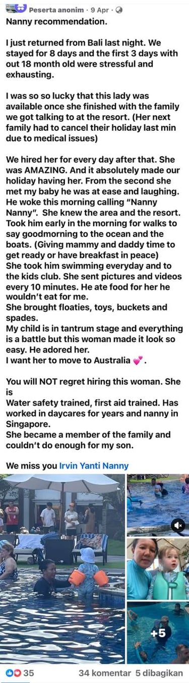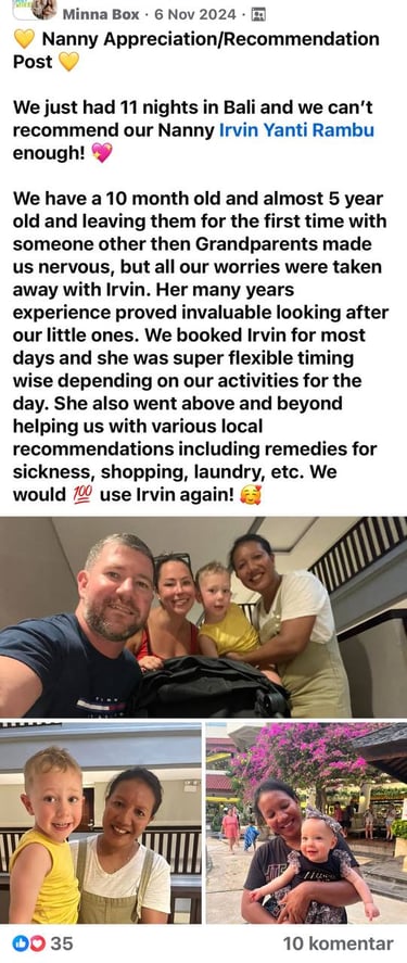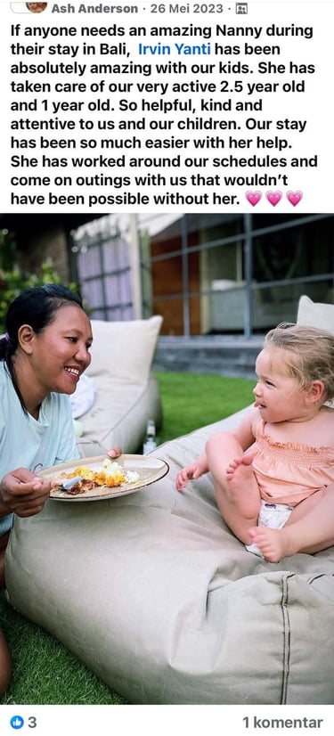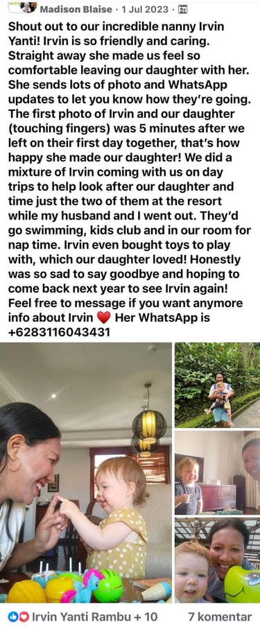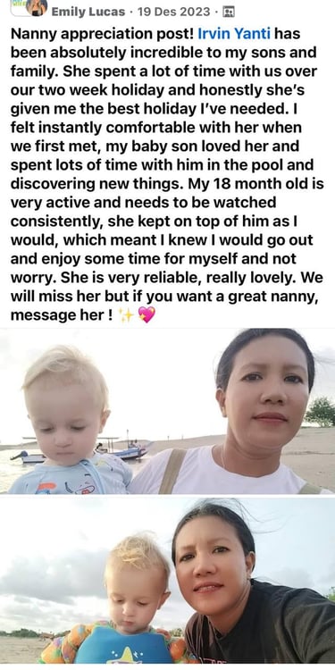 I AM A CARING AND EXPERIENCED NANNY WITH A PASSION FOR WORKING WITH CHILDREN. I ASSIST WITH DAILY ROUTINES, PLAYTIME, AND MEALS, CREATING A SAFE, HAPPY, AND LOVING ENVIRONMENT FOR THEM.