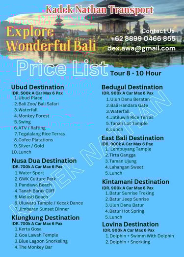Kadek Nathan Transport: Beyond transfers, we offer full-service transportation and unforgettable Bali tour packages.